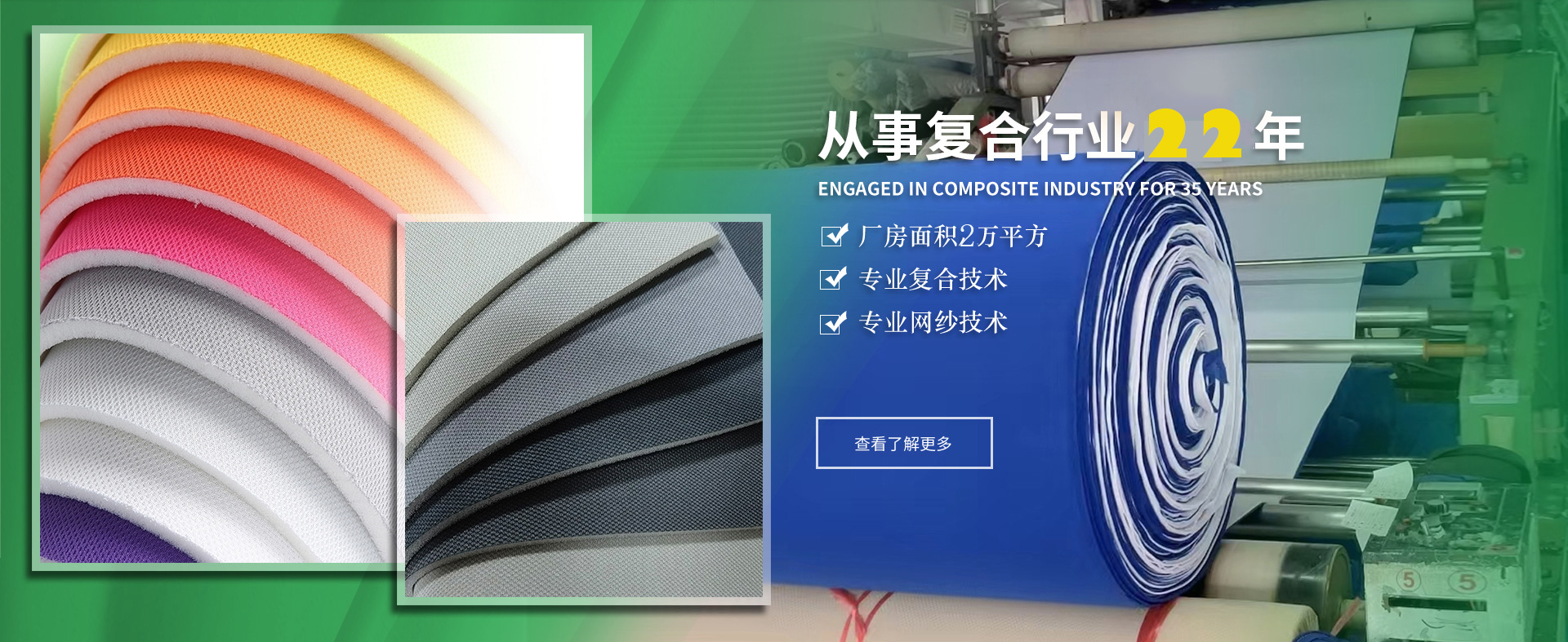 溫州市鑫興隆鞋材復(fù)合有限公司創(chuàng)辦于2002年,座落于溫州市龍灣區(qū)濱海九路18號(hào)。分公司溫州金埠鞋業(yè)有限公司座落于溫州市鹿城區(qū)中國(guó)鞋都2期27號(hào)地塊,生產(chǎn)車(chē)間20000平方。第1車(chē)間主要生產(chǎn)鞋材復(fù)合布、頭盔內(nèi)襯復(fù)合布、箱包內(nèi)襯復(fù)合布、汽車(chē)座椅套復(fù)合布、醫(yī)療復(fù)合布、護(hù)腕護(hù)膝復(fù)合布、潛水料復(fù)合布,EVA、切片復(fù)合布。第2車(chē)間主要生產(chǎn)針織布料、定型布、里子布、網(wǎng)紗、 ...
